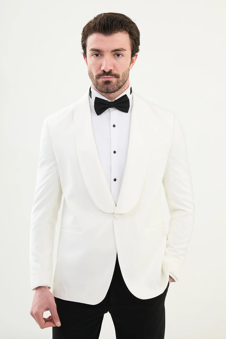 Whether you're making a statement at a summer soirée or styling it down with loafers and a tee, this Aalvert off white Tuxedo for men effortlessly blends sophistication with seasonal flair.