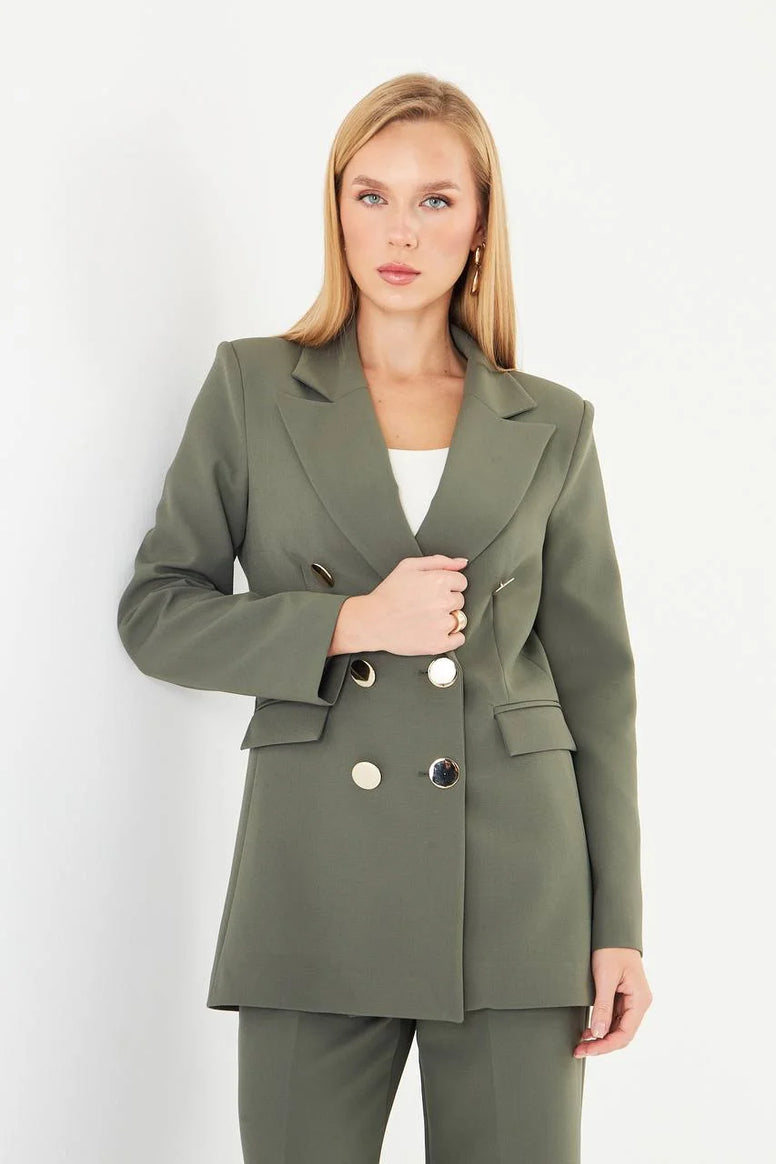 The Khaki Business Suit for Women is a stylish and professional two-piece ensemble designed to elevate your corporate wardrobe with confidence and sophistication. Crafted from premium, breathable fabric with a tailored slim fit silhouette, this women’s khaki suit delivers exceptional comfort, structure, and all-day wearability. The bold khaki green color adds a modern and empowering touch to traditional office attire, making it perfect for business meetings, corporate events, presentations, and formal work environments. With its expertly tailored blazer and perfectly fitted trousers, this women’s professional suit enhances your figure while maintaining a polished and elegant look. Ideal for career-oriented women seeking a chic and versatile outfit, this khaki women’s business suit pairs seamlessly with blouses, shirts, and heels for a refined, confident appearance. Durable construction, high-quality stitching, and timeless design make it an essential addition to any professional wardrobe.