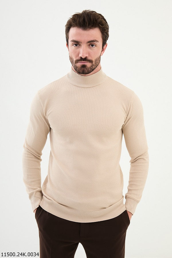 Elevate your Style with our Ames Mock Turtleneck Wool Sweater - Beige