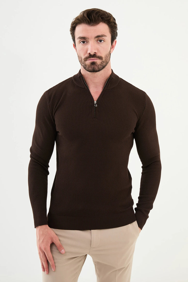 Elevate your Style with our Ames Zip Neck Wool Sweater Brown