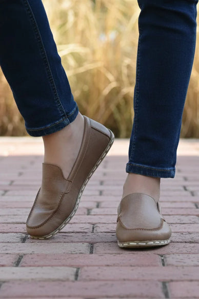 Comfortable Gent With Barefoot Matte Brown Moccasins for Women. Made with genuine leather, these matte brown moccasins are especially designed for modern women to look stylish yet comfortable at any event. Zero drop matte brown moccasins comes with barefoot shoes having copper rivet earthing to keep body connected to earth whole day. These matte brown leather shoes designed to value health while looking stylish whole year. These are made to order handmade shoes. Free Worldwide Shipping.