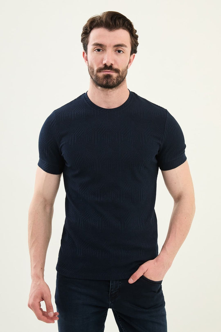 Checkered Navy Blue Crew Neck T Shirt Features: