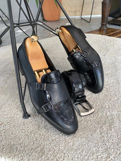 GentWith Enid Black Double Monk Strap Shoes Features: