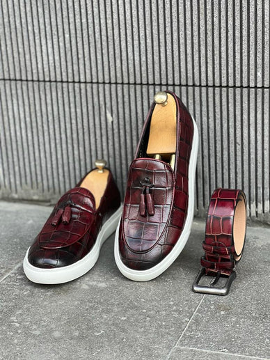 GentWith Laughlin Burgundy Crocodile Pattern Slip Ons