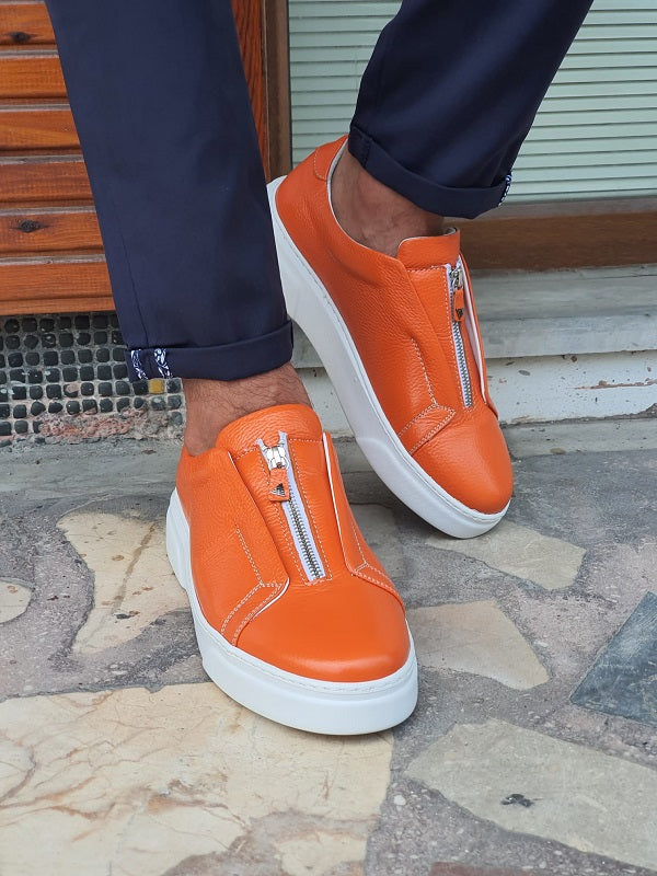 Laughlin Mid-Top Zipper Orange Sneakers Features: