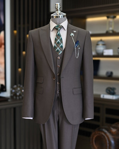 GentWith Manassas Coffee Brown Slim Fit 3 Piece Peak Lapel Suit