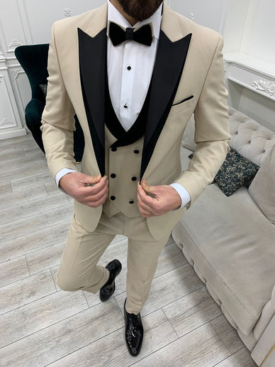 Molalla Beige Slim Fit Velvet Peak Lapel Tuxedo