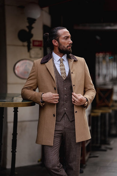 Rapid Camel Slim Fit Single Breasted Long Wool Coat