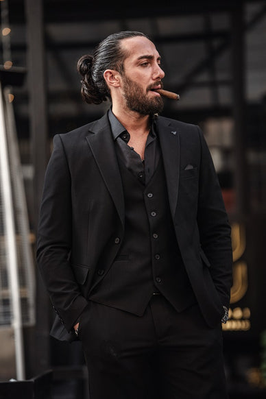 Sturgis Black Slim Fit Notch Lapel 3 Piece Suit Features:
