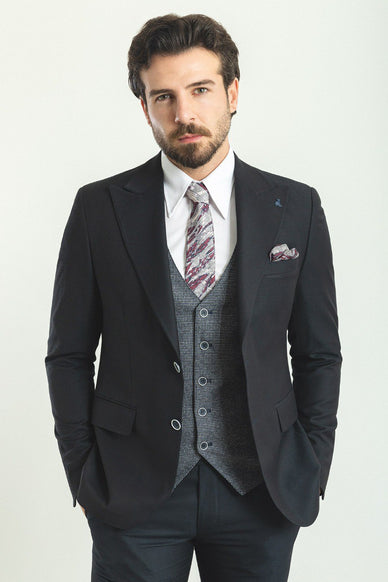Elevate your Style with our Sturgis Gray Black Slim Fit Peak Lapel Combination 3 Piece Suit