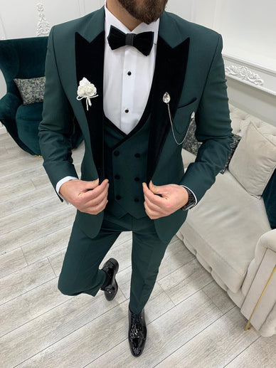 Joliet Slim Fit Velvet Peak Lapel Dark Green Tuxedo