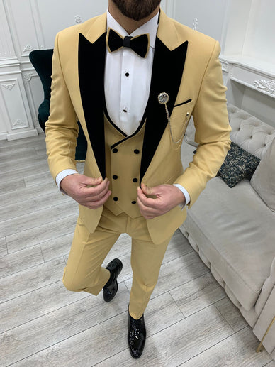Joliet Slim Fit Velvet Peak Lapel Yellow Tuxedo