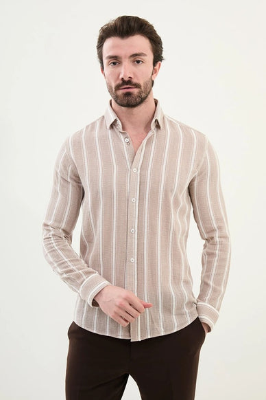 Marina Brown Long Sleeve Striped Shirt Key Features: