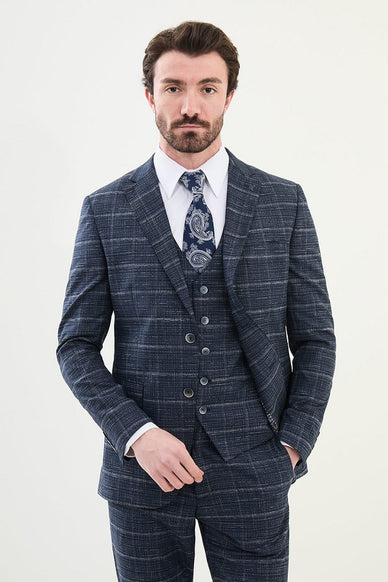 Elevate your Style with our Marion 3 Piece Plaid Navy Blue Linen Suit