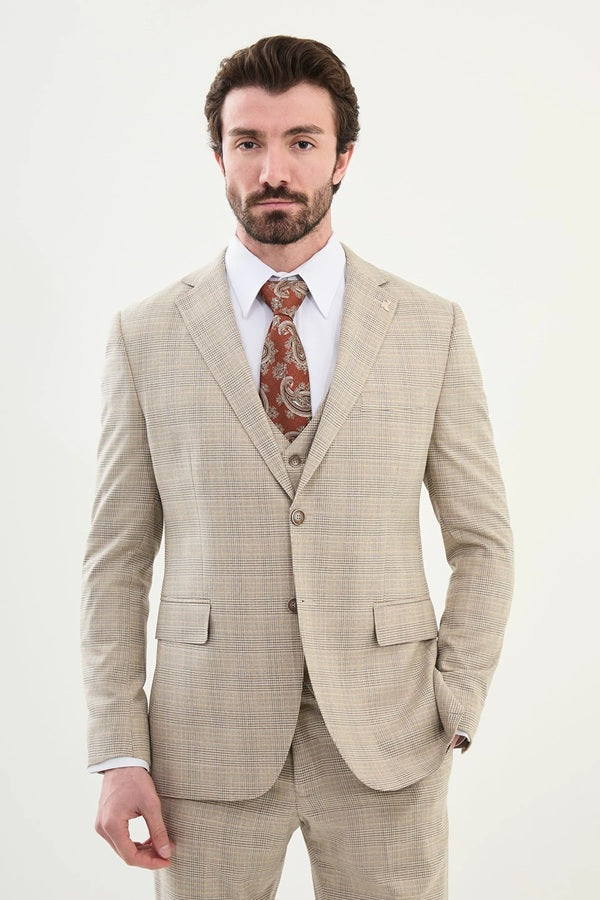 Marion Beige 3 Piece Checkered Suit