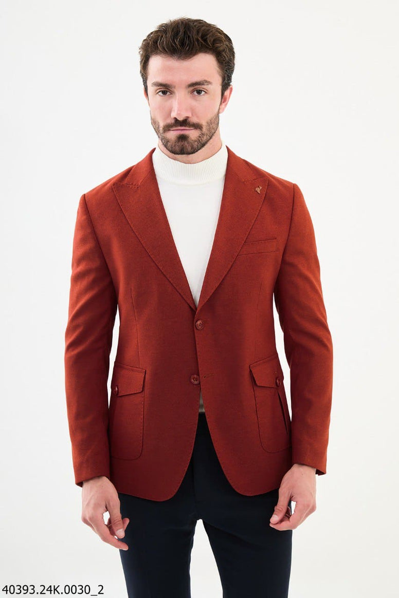 Elevate your Style with our Mitchell Slim Fit Peak Lapel Rust Brown Blazer