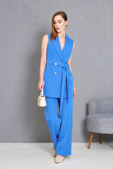 Sleeveless 2 Piece Blue Suit Women