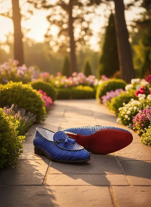 The Akua Blue Black Tassel Loafers offer a refined balance of modern style and classic elegance. Crafted as handmade genuine leather shoes, these loafers feature a premium blue and black leather upper with sophisticated tassel detailing that enhances their timeless appeal. The easy slip-on design ensures comfort and convenience, while the durable leather construction provides long-lasting wear. Perfect for formal occasions, office wear, and smart casual looks, these blue black leather tassel loafers showcase expert craftsmanship, superior quality, and effortless sophistication.