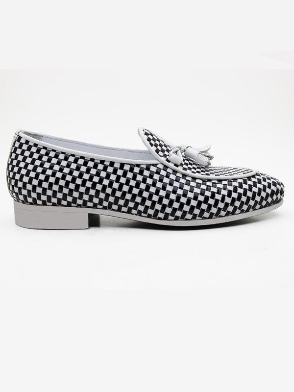 The Akua White Black Tassel Loafers
