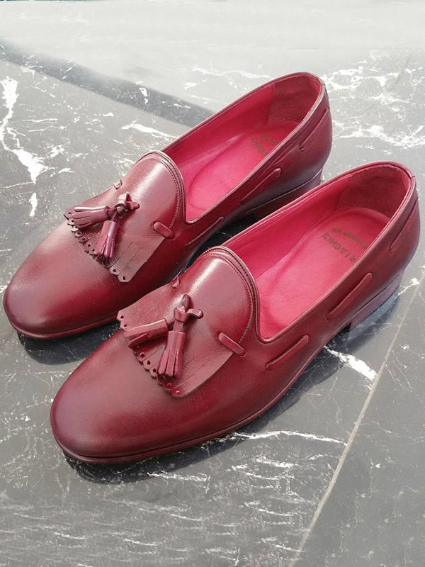 The Felicity Burgundy Tassel Loafers Features: