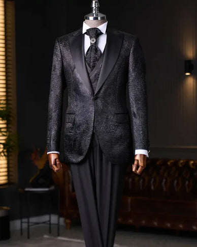The Wilson Black Prom Suit is a sleek, modern, and sophisticated 3 piece suit designed for men who want to make a sharp, elegant impression at prom, weddings, parties, or any formal evening event. Crafted with premium quality fabric and precise slim fit tailoring, this black suit offers a clean and polished silhouette that enhances your shape while keeping you comfortable through the night. The suit includes a stylish jacket with refined lapels, a matching vest, and perfectly tailored trousers, creating a complete, coordinated look that stands out for its simplicity and timeless charm. Whether you're aiming for a classic prom style or a stylish formal outfit, the Wilson Black Prom Suit provides exceptional versatility and elegance. Pair it with a crisp white dress shirt, a bow tie or slim tie, and polished dress shoes to elevate your entire ensemble. Designed to photograph beautifully and deliver a confident, modern look, this suit is the perfect choice for men seeking a classic black prom suit that blends contemporary style with traditional sophistication.